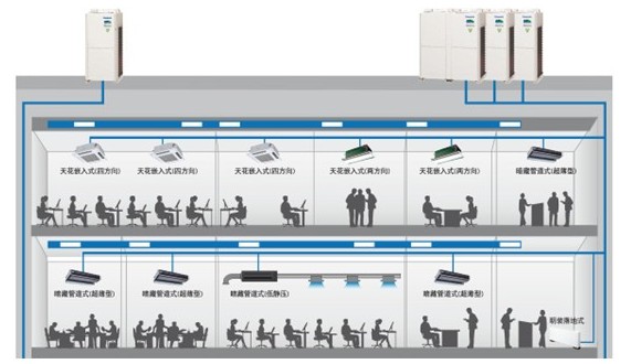 多聯(lián)式空調(diào)系統(tǒng)(又叫變制冷劑流量空調(diào)系統(tǒng)簡稱VRV)上世紀90年代初被引入我國,以其部分負荷運行時能效比較高,季節(jié)能效比較高等優(yōu)點被廣泛應用于中小型建筑中。<br />