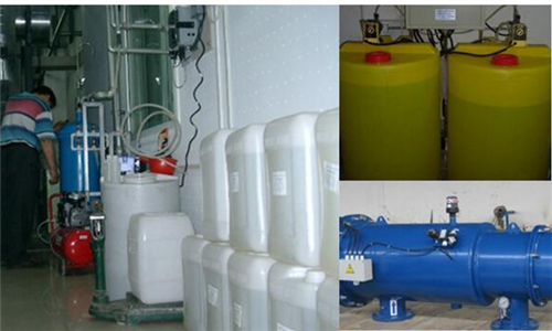 中央空調(diào)水系統(tǒng)在運行過程中總會有大量腐蝕產(chǎn)物和藻類生物粘泥產(chǎn)生;蒸發(fā)器、冷凝器、吸收器及換熱器內(nèi)銅管管壁產(chǎn)生水垢、淤泥、鐵銹等,這些物質(zhì)很容易堵塞銅管,嚴重影響中央空調(diào)的制冷效果和使用壽命。故需要對空調(diào)系統(tǒng)進行定期的物理、化學清洗以確保系統(tǒng)內(nèi)水質(zhì)符合機組運行要求。